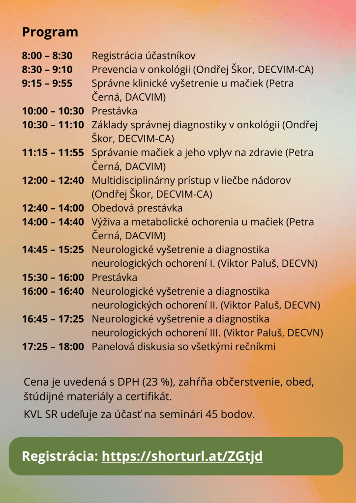 Pozvánka na seminár: Multidisciplinárny prístup k zdraviu psov a mačiek